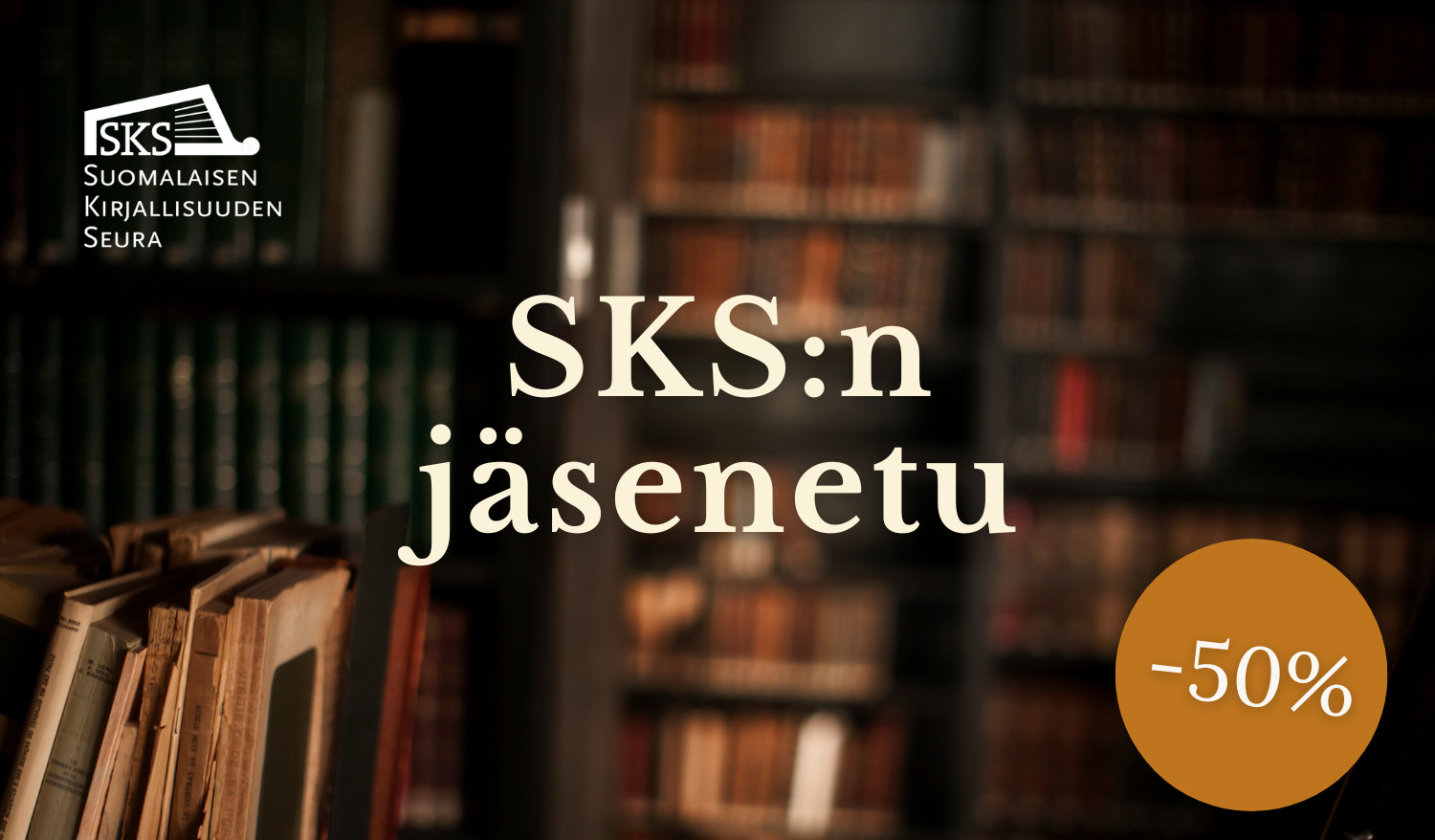 SKS:n jäsenenä saat 50 % alennuksen SKS:n julkaisemien kirjojen normaalihinnoista myös kirjakauppa Tiedekirjan myymälässä Helsingissä. Muista mainita jäsenyydestäsi myymälän kassalla.