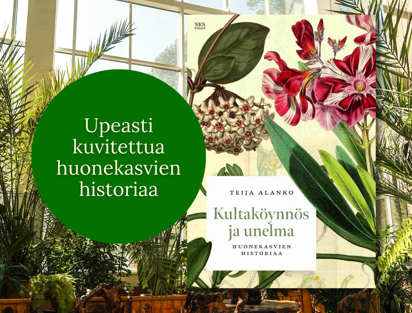 Saintpaulioita ikkunalaudoilla, palmuja suuruudenhulluissa kasvihuoneissa. Begonioita ja posliinikukkia, lasipullossa itäneitä salajuonia. Oleantereita, juoruja ja kasvinmetsästyksen kiihkoa. Kasvit olivat menneinä vuosisatoina arvokkaita aarteita, j...